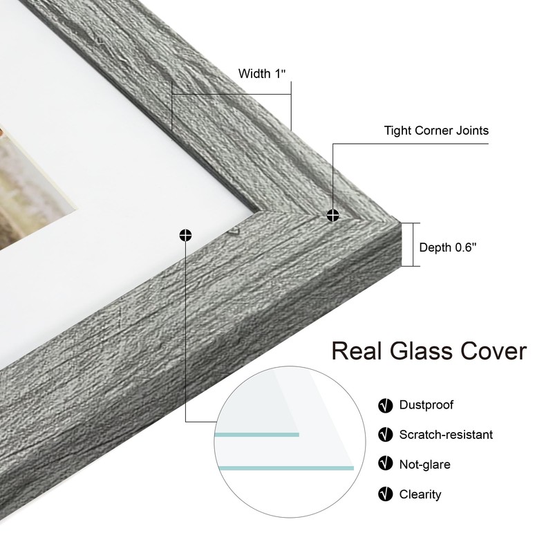 - Rustic Wood and Glass - The 10x10 collage picture frames made of durable MDF wood compared to other flimsy PS or plastics frames. we use tempered glass is an exceptional alternative to plexiglass, eliminating the inconveniences of bending, reflection, fragility, and susceptibility to scratches. Its edges are meticulously polished, ensuring your safety and shielding you from the harm caused by sharp glass edges