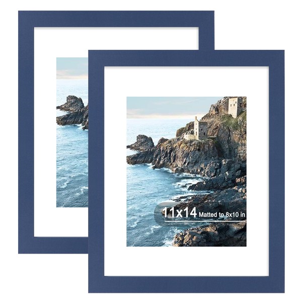 Hongkee 11x14 Picture Frame (2 Pack, Blue), Display Pictures 8x10 with Mat or 11x14 Without Mat, 11 by 14 Photo Frames Wall Mounting - Horizontal or Vertical