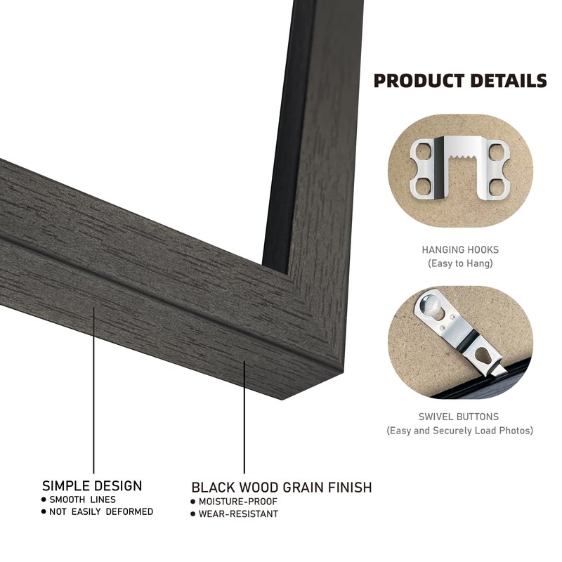 • Frame Design: The black 12x16 poster frame is designed in a modern style, classic and simple, suitable for any style, you can use these black picture frames to display your favorite posters, wedding photos, personal photos, art paintings, certificates and collections