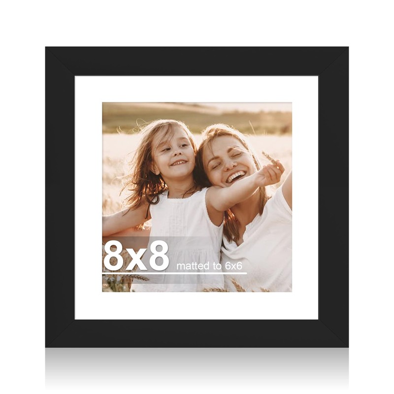 • One Frame Two Sizes: The square 8x8 inch photo frame comes with a mat to display two sizes of photos for every need. This set of frames is suitable for 8x8 inch photos no mat or 6x6 inch photos with mat