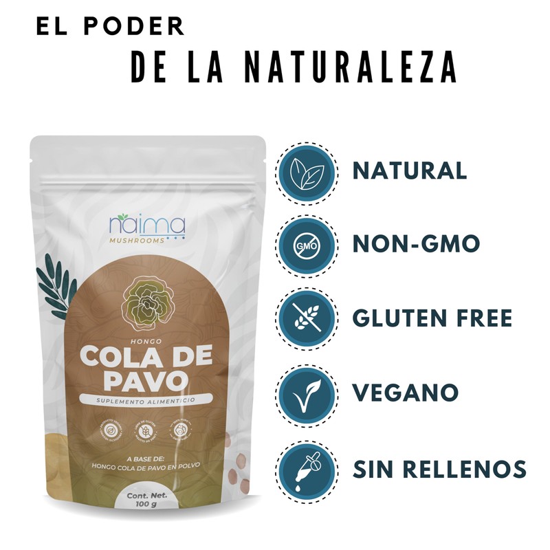 Hongo Cola de Pavo - En Polvo - Vegan -100 Gr - Adaptógenos - 100% Natural & 100% Hongo Cola de Pavo
