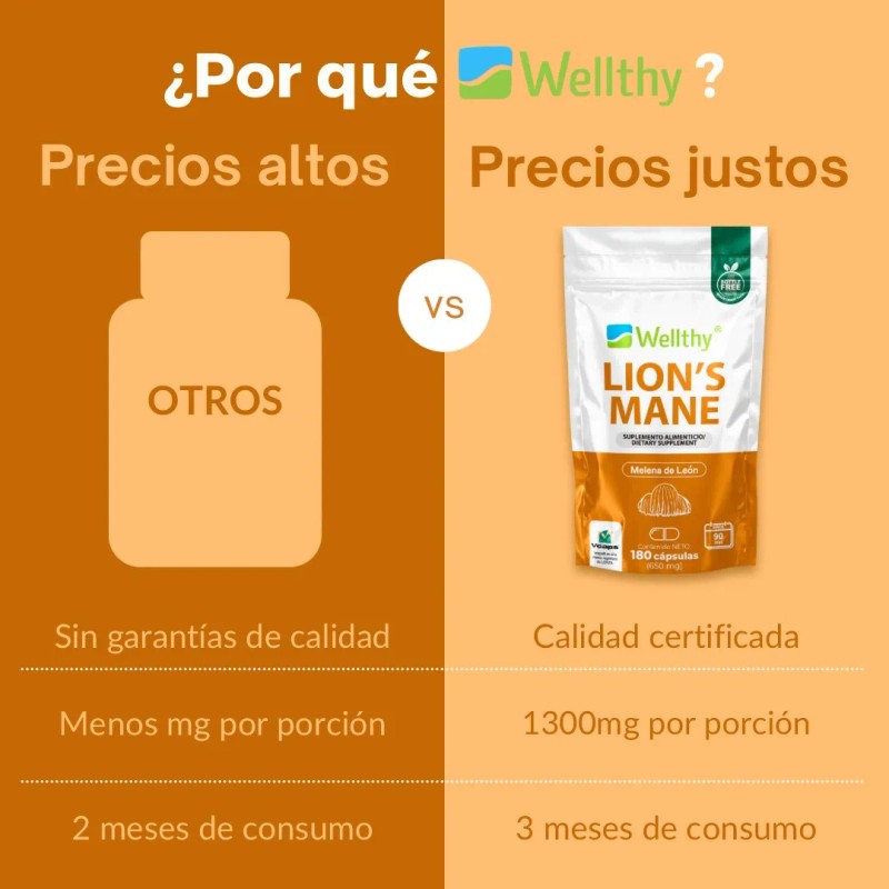 Wellthy Hongo Melena de León: 180 Cápsulas para Soporte Cognitivo