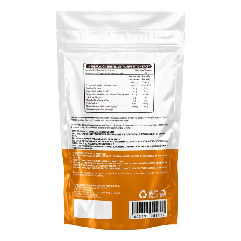 El Hongo Melena de León (Hericium erinaceus) de Wellthy es un suplemento alimenticio diseñado para brindar un soporte integral a la salud cognitiva y neurológica. Se presenta en un frasco con 180 cápsulas, lo que ofrece un suministro prolongado para un uso continuo.
