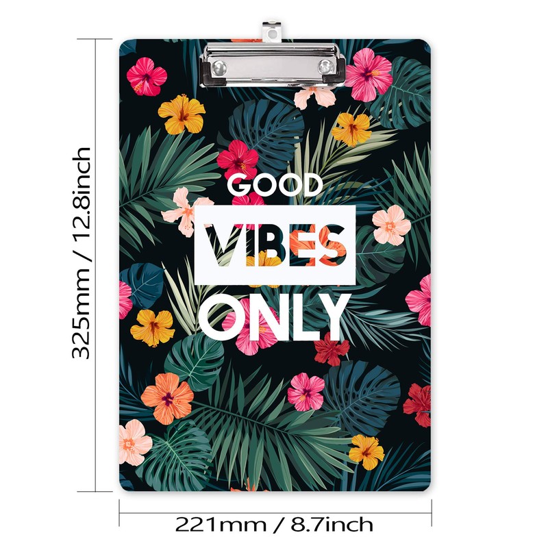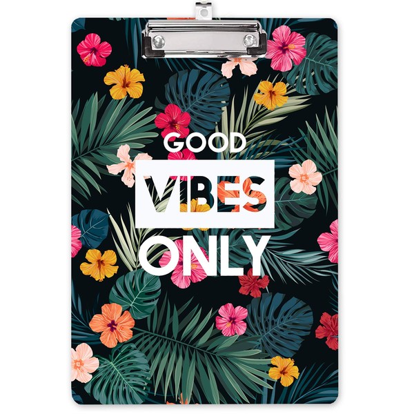 Hongri Clipboard, Fashion Design Letter Size Wooden Clipboards for Students, Women, Man and Kids, Cute Custom Pattern, A4 Standard Size 9" x 12.5" with Low Profile Metal Clip, Good Vibes