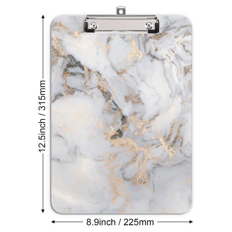 Hongri Plastic Clipboard, Standard A4 Letter Size for Students, Teacher, Woman and Kids, Low Profile Clip, Decorative Clipboards, Cute Clipboard Custom Pattern, Size 9" x 12.5", Chaos Marble