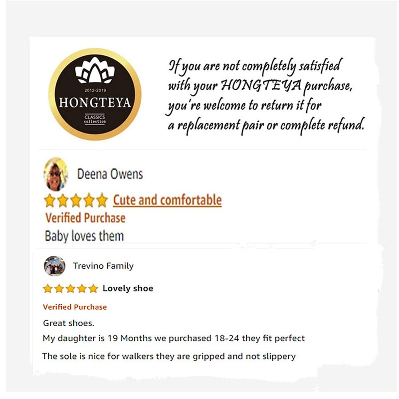 - SERVICE - We’re so confident in the quality of our baby moccasins that if at any point you aren’t completely satisfied with your HONGTEYA Baby purchase, you’re welcome to return it for a replacement pair or complete refund.
