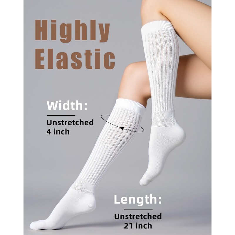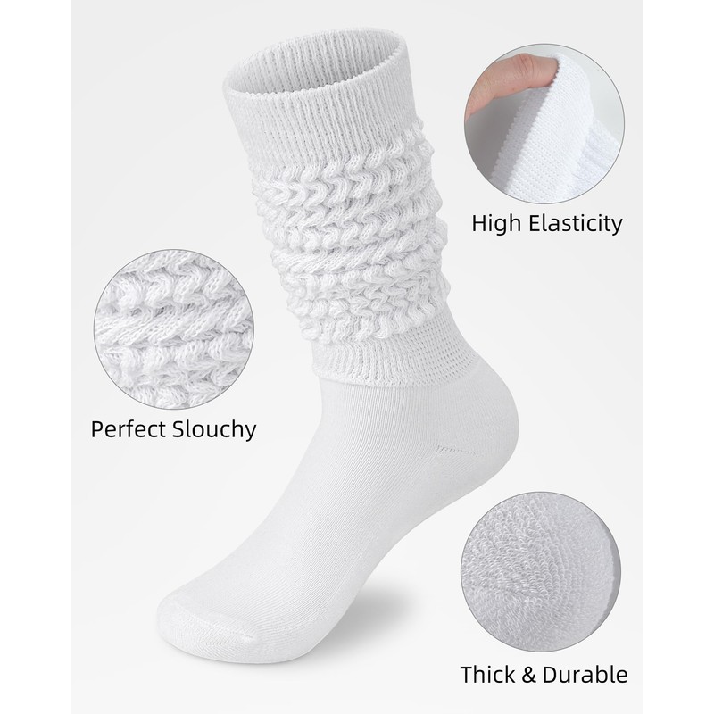 - COMFY WEAR: Slouch socks for women are soft,thick and breathable on the foot. The upper part with proper elasticity will not tighten your calf and still stay up well.