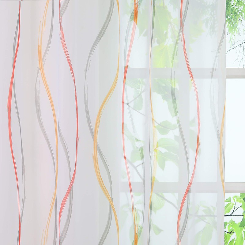 HongYa Pack of 1 Voile Curtains Transparent Curtain with Light Ground Waves Print