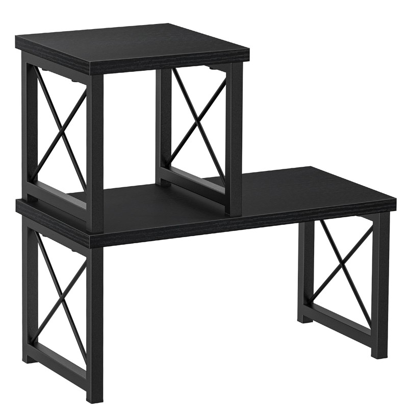 - Built to Last: Our desktop shelf is built to last, with a sturdy wood and metal structure. The heavy-duty wood and matte metal finish are reinforced by an X type fence design, making the organizer more stable and durable. Each layer can hold up to 50 pounds, and four anti-skid feet protect your desk surface from scratches and scuffs.