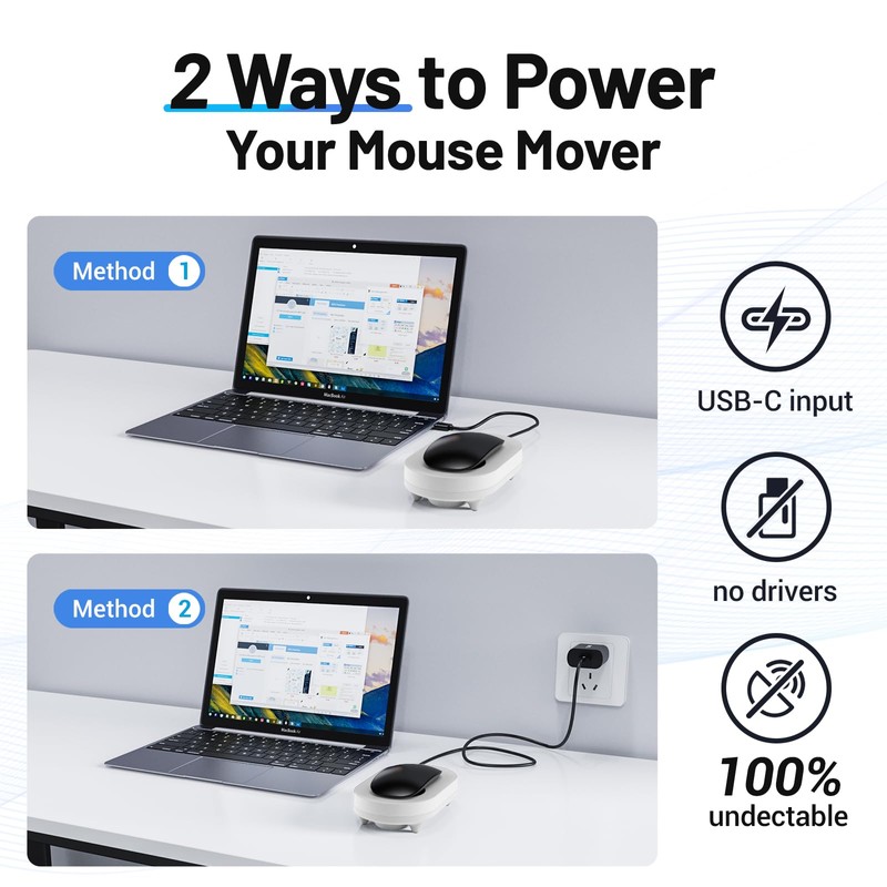 • USB & 100% UNDETECTABLE: Our mouse mover use a standard USB, and can be plugged in directly to your computer or an electric outlet if you have an adapter. There is no advanced logic, nothing to program or configure