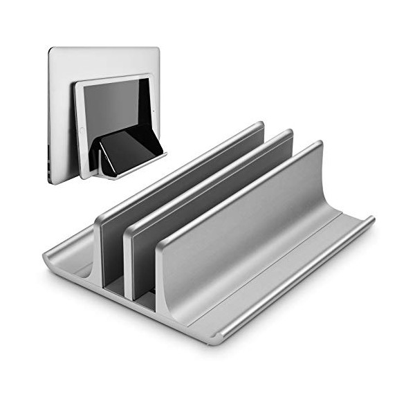 HONKID Vertical Laptop Stand, Aluminum Macbook Holder Adjustable Desktop Laptop Dock (up to 17.3 in) Compatible with All MacBook/Surface/HP/Dell/Lenovo/Gaming Laptops,Black
