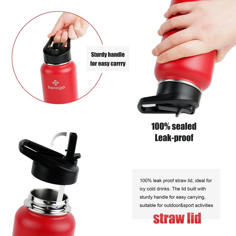 - INNOVATIVE VACUUM INSULATION: With double layered vacuum-insulated, Honogo 40 ounce thermo bottle provide perfect termperature control, keep beverages cold up to 24 hours, and hot up to 12 hours with fresh taste. 100% sweat free and no condensation