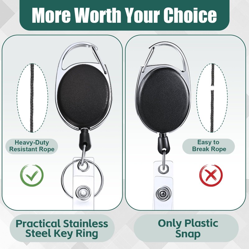 - Package: you will get 10 packs of retractable badge clips, featuring clip, stainless steel key ring, vinyl snap strap and plastic cover, clip attachment for effortlessly and quickly fastening to belt loops, straps, backpacks, bags and more, allow a quick and easy way to scan or swipe your badge