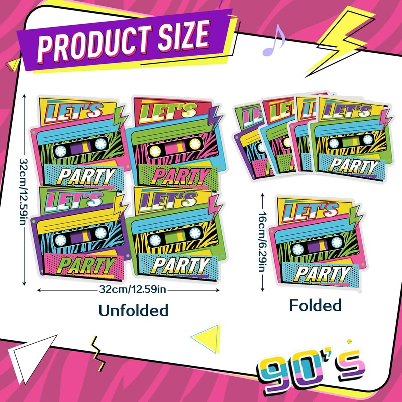 - Diseño retro: estas servilletas de fiesta están llenas de elementos retro, y con el texto let's party, los patrones de colores brillantes añaden un fuerte ambiente de fiesta retro, ideal para las fiestas de cumpleaños temáticas de hip hop de los años 50, 70, 80 y 90