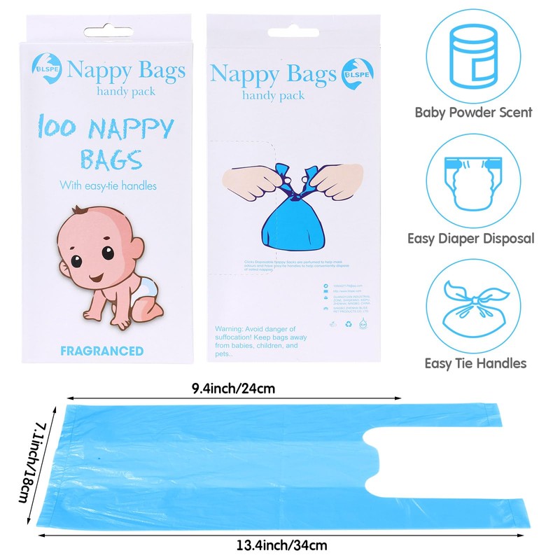 - Convenient Handle Design: each diaper bag disposable is sized at 13.4 x 7.1 inches (34 x 18 cm) and features an easy-to-carry handle; These handles make transporting dirty diaper sacks effortless and clean, while effectively containing odors; Ideal for home use, daycares, cars, or offices, ensuring your surroundings remain fresh