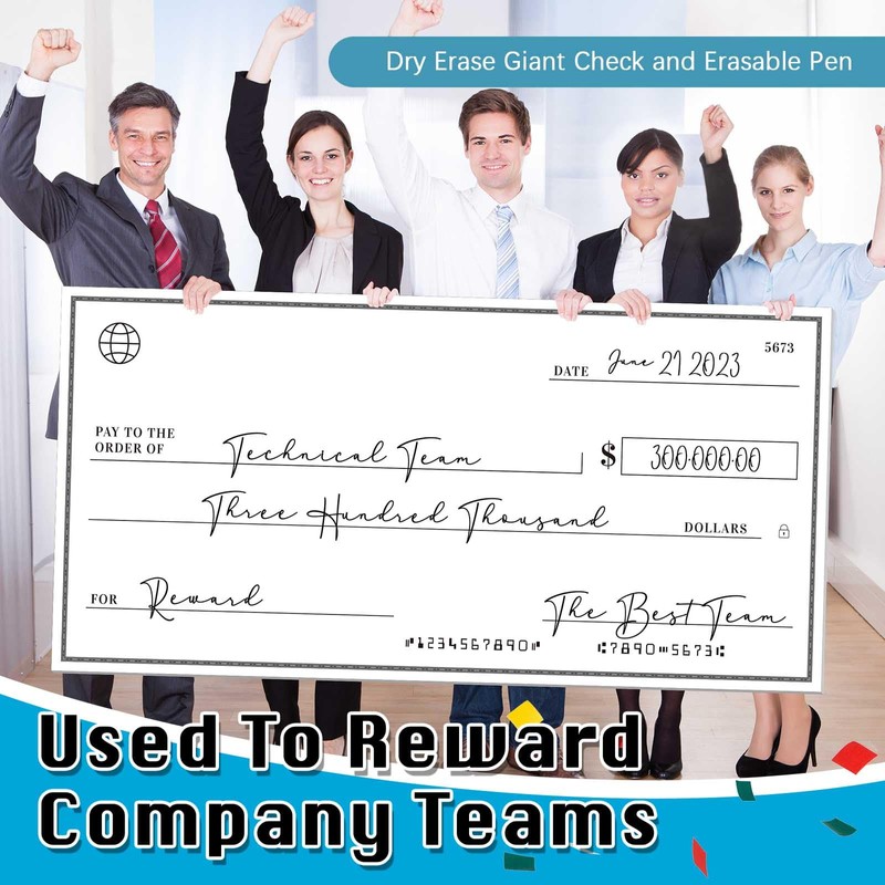 - Convenient to Erase and Reusable to Use: each package includes not 1, but 2 presentation checks, as well as 6 erasable pens, so you'll always have a backup; Plus, the erasable pens are conveniently included, so you can start using your checks right away; The erasable pens can also wipe away their marks with ease and won't leave any stains; You can also use the tissue or rag to clean the marks