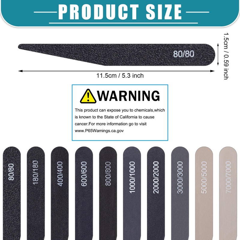 - Package Contents: this set includes 20 sanding sticks in 10 different grits 80, 180, 400, 600, 800, 1000, 2000, 3000, 5000, and 7000; The generous quantity and diversity cater to any sanding needs you have, providing a smoother finish for your projects