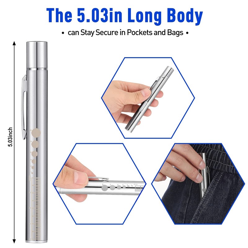 - Lightweight for easy carrying: the reusable penlights with metal clip will not easily slip from your pocket, which allows them to be applied and carried easily; With a lightweight design, they are proper for caregivers, nurses and doctors, medical students and more