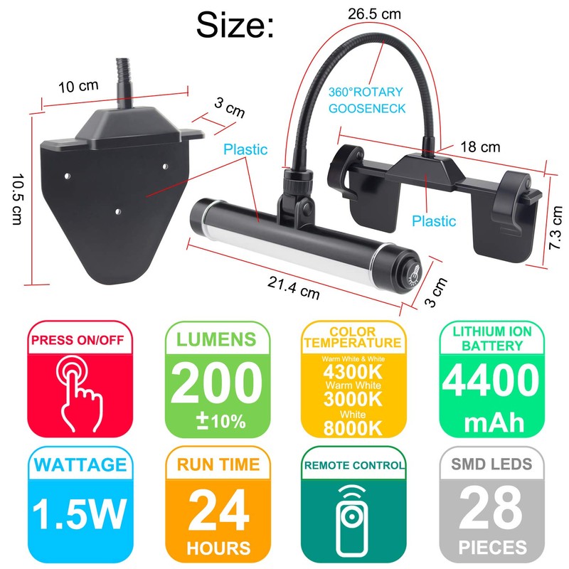 - ► [Super Bright Picture Lights] - 200 Lumens, 28 super bright SMD LEDs. 3 Lighting Modes for your choice (3000K warm white, 4300K natural white, 8000K cool white), just by clicking the button switch on the lamp head and by using remote.