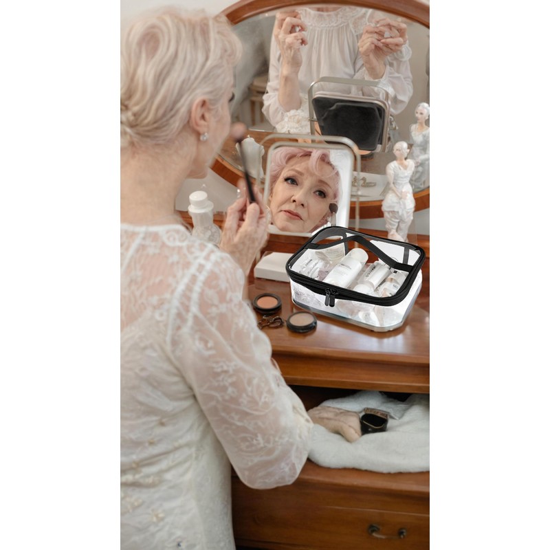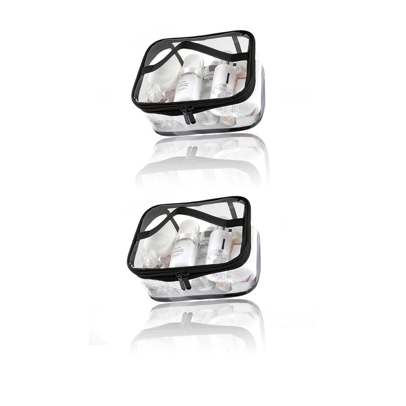 Stay organized and stylish with our Clear Makeup Bag set, featuring 2 portable cosmetic pouches designed for ultimate convenience.Made from durable and water-resistant PVC material, these bags offer crystal-clear visibility, allowing you to see all your items at a glance without the hassle of rummaging through clutter.Whether you're packing for a weekend getaway or organizing your daily essentials, the spacious interior fits everything from makeup and toiletries to electronics and personal items.The versatile design serves multiple purposes, as a makeup organizer, travel bag, or even a stylish clutch.
