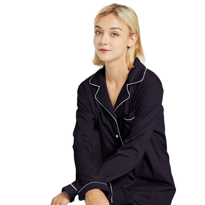 - 【Fashionable and Classic Design】Pajamas for women set cotton, long sleeves tops, button front, left chest pocket, notch collar and contrast piping design. Pajama tops can be paired not only with matching pajama pants, but also easily with lounge pants, jeans and more, making the classic, versatile womens lounge set perfect for home and going out