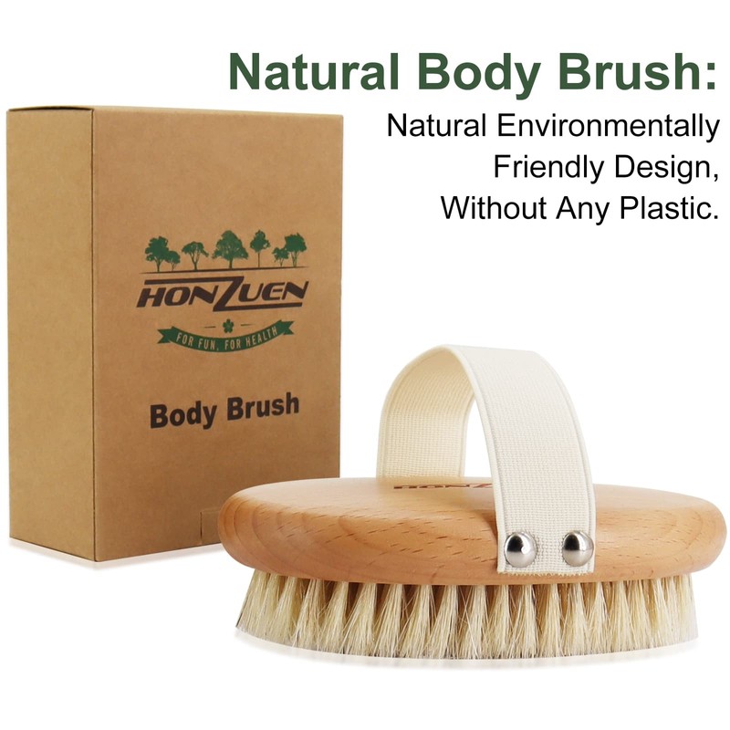 HONZUEN Body Brush Natural Bristles, Dry Brush, Ideal Bath Brush for Improving Circulation and Lymphatic Drainage, Tightening the Skin and Eliminating Cellulite