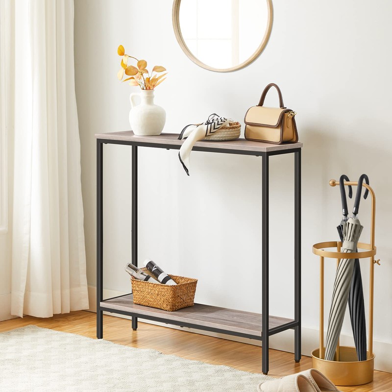 HOOBRO 29.5 Inches Console Table, Narrow Entryway Table with Shelves, Small Sofa Table, Side Table, Display Table, for Hallway, Living Room, Bedroom, Foyer, Greige and Black BG22XG01