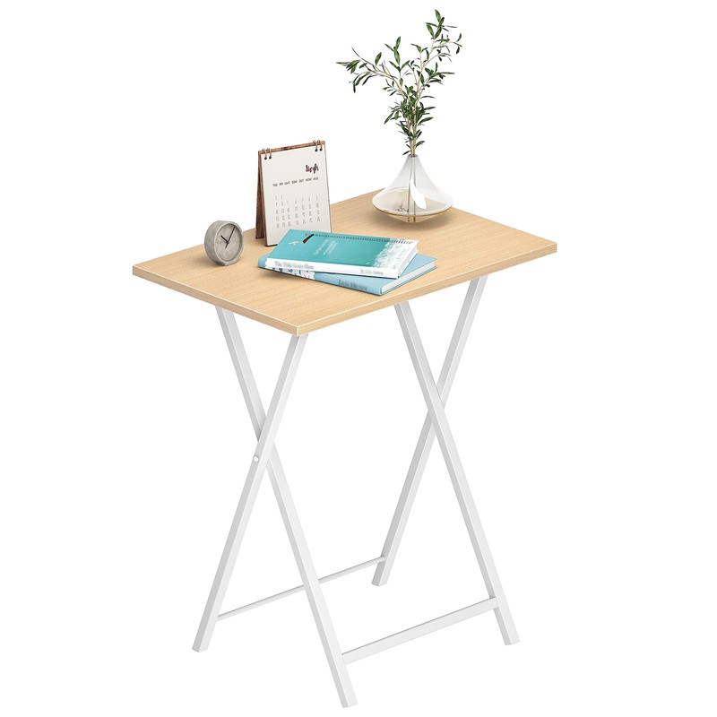 HOOBRO Folding TV Tray Tables, Set of 2 Side Table for Small Space, Industrial Snack Tables for Eating at Couch, Stable Metal Frame, Easy Assembly, Space Saving, Natural and White WN25BZ01