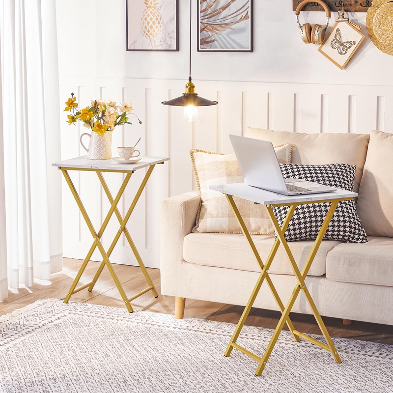 - Multiple Advantages: Don't want the side table taking up too much space when not in use? This TV tray can easily be folded and stored under the sofa, freeing up more common space.When folded, the folding table is portable to be carried anywhere needed