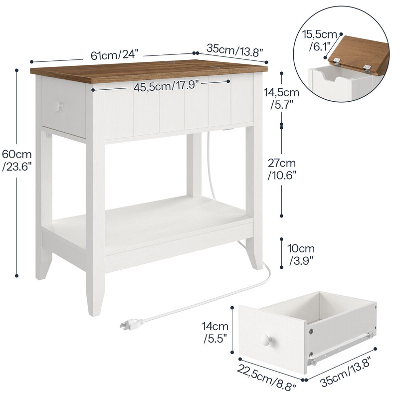HOOBRO Nightstand End Table w/ Charging Station Side Table 24" x 13.8" x 23.6"