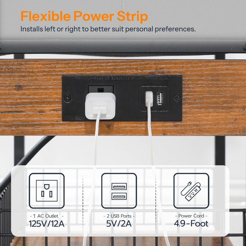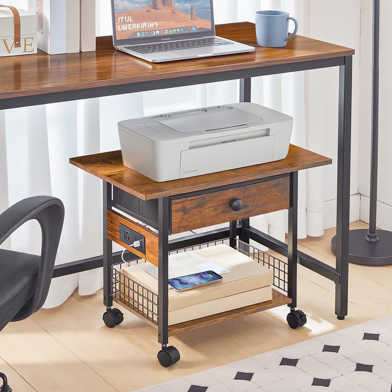 - Integrated Power Outlet Printer Desk: This printer desk is equipped with 1 outlet and 2 USB ports, offering a convenient power solution that negates the need for additional power strips, keeping your workspace tidy and your devices charged