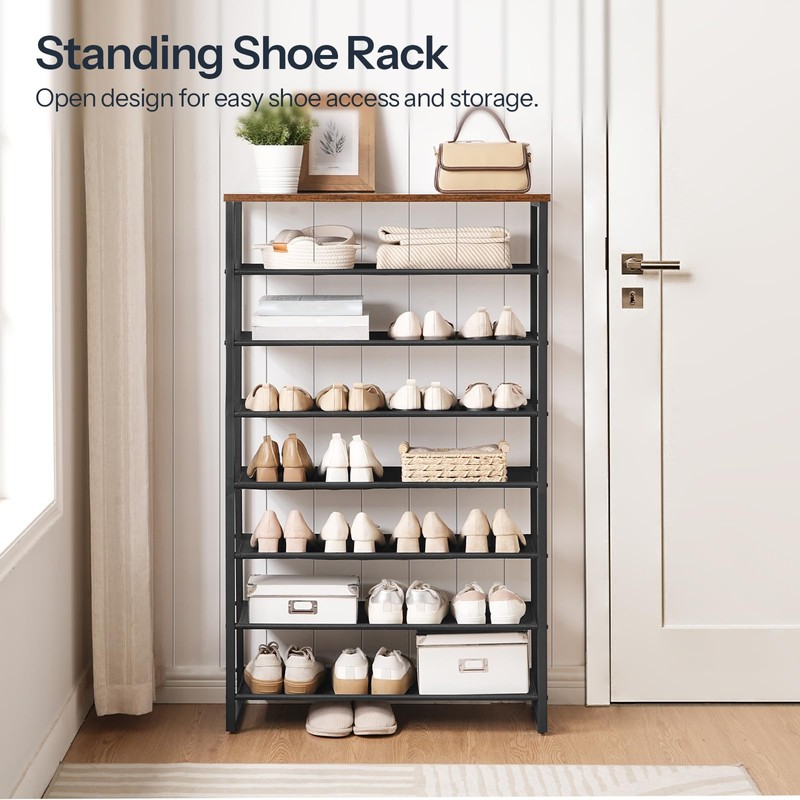 HOOBRO Shoe Rack for Front Door Entrance, 8-Tier Large Shoe Organizer, Shoe Shelf for Entryway, for 28-32 Pairs of Shoes, Hallway, Living Room, Bedroom, Black and Rustic Brown BF53XJ01
