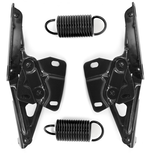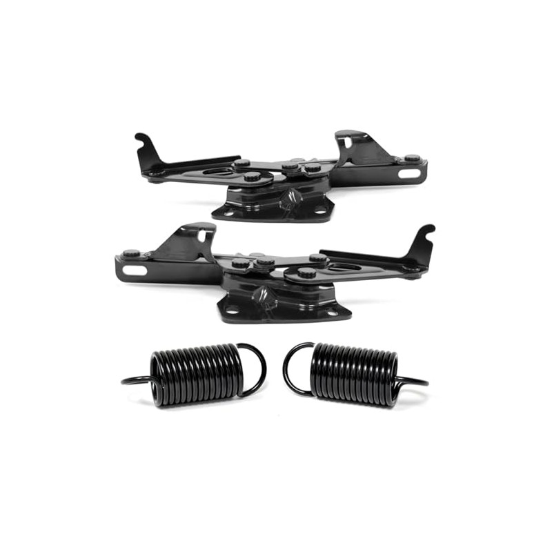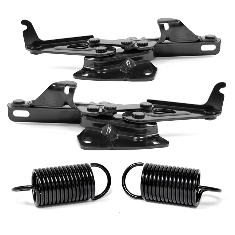 - Includes Driver Side Hinge, Passenger Side Hinge, Pair of Assist Springs