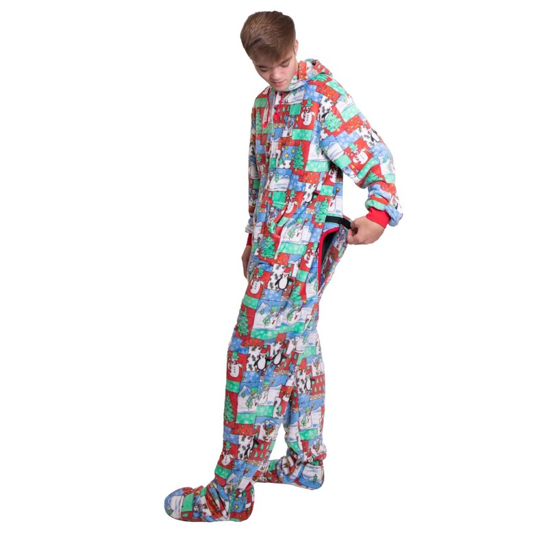 - BEST IN CLASS FROM HOOD TO FOOT – One piece footie pajama features a hood with drawstring, zipper front closure, 2 kangaroo pockets, fun and convenient drop seat and pajama feet have Non-Slip No-Skid soles. ?Drop Seat style – For this onesie with No Drop Seat - search Amazon for: Big Feet Pajama 705-NDS