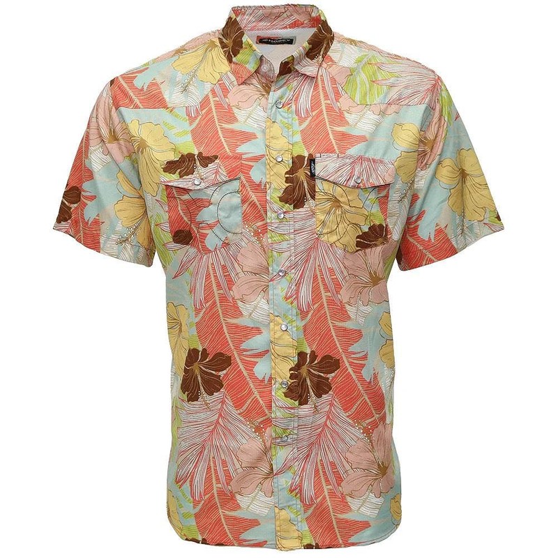 Hooey Men's Sol Shirt Floral Print Short SleeveCustom vented western yoke to facilitate air flowLightweight, fast-drying 100% polyester ripstop materialMoisture wicking and water repellent properties40 UPF sun protectionPearl snaps, hidden snaps under collarAthletic fit with shirt tail hemBuilt-in microfiber lens clothHT1861FLThe Men's Floral Print Sol Shirt from HOOEY is a unique blend of casual sophistication and high-quality fabrication. It features a vibrant, intricate, floral pattern that escalates any outfit from average to intriguing. Made from premium, breathable fabric, this shirt ensures comfort and durability. The HOOEY brand prides itself on offering trendy yet comfortable apparel, and this shirt is a testament to that. Perfect for any social outing, this shirt is a must-have for the fashion-conscious man.