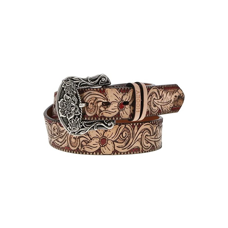 HOOEY Women's Original Embossed Floral Filigree Western Belt Brown Large