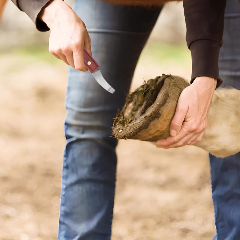 - Non Slip: The hoof knife sharpener exquisite design, which is beneficial for prevent slip and fall off from your hands. Horse hoof trimming tools the overall curve is ergonomically designed to bring you a comfortable hand.This hoof trimmer shears stainless steel blade have rubber wood handle, which fits ergonomic design and brings comfortable hand feeling for users