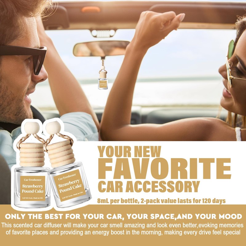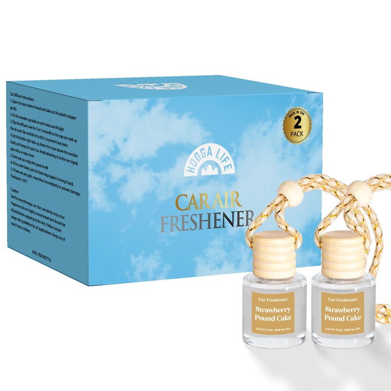 HoogaLife HoogaLife Car Air Freshener Diffuser 2 Pack Hanging Air Freshener Diffuser - Strawberry Pound Cake Fragrance Oil Air D iffuser for Car, 45+ days Long Lasting Fragrance Made in USA C ar Air Fresheners