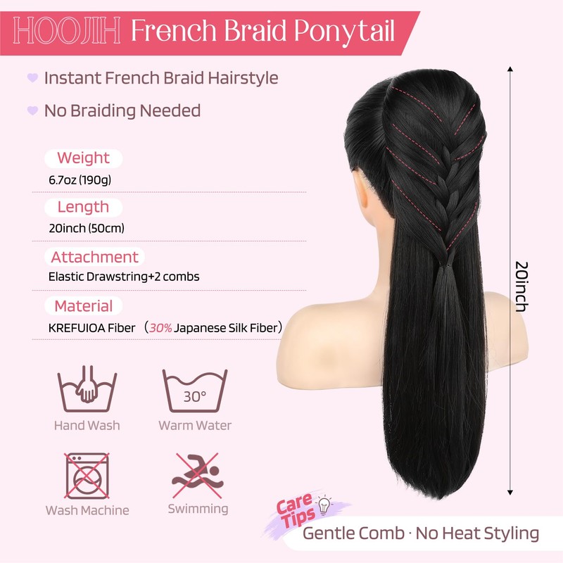 - Instant French Braid Ponytail – Pre-styled 20 inch braided ponytail extension gives you an elegant look in seconds. No braiding skills needed, just clip in and go