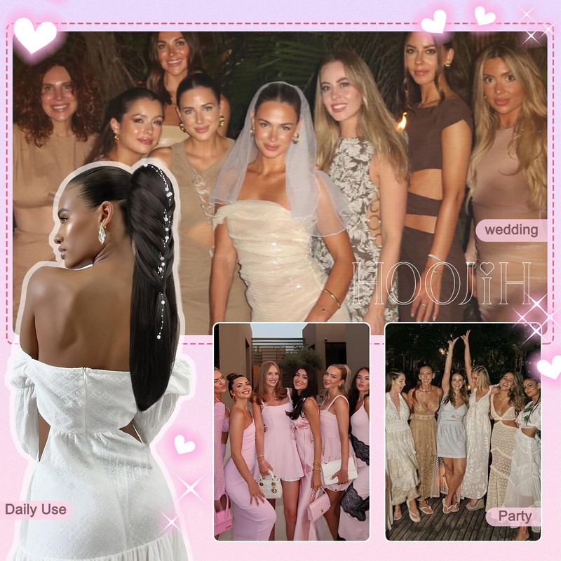 - Two Styles, More Options – [With Pearl] for weddings, proms, and parties; [Without Pear] for simple everyday elegance. One ponytail extension, multiple occasions