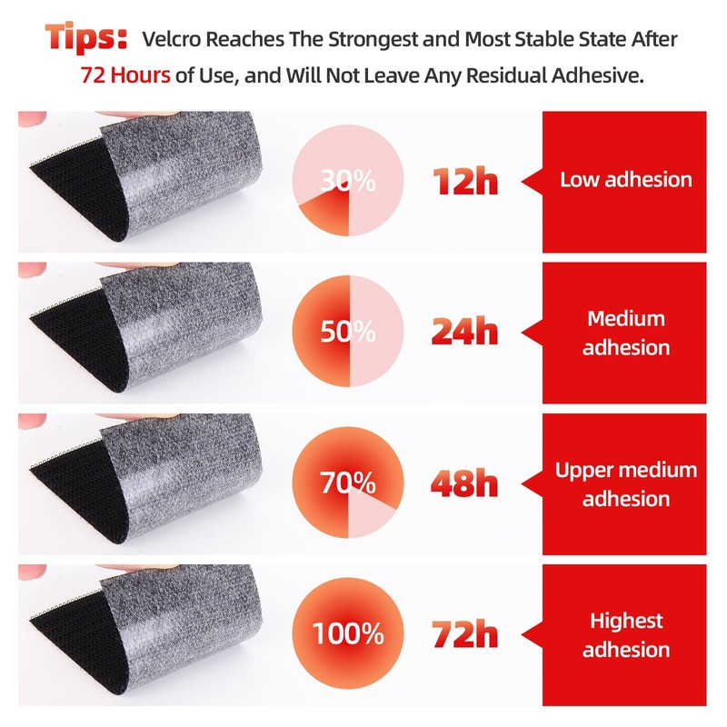 - 【HOW TO USE HOOK LOOP FASTENER】1, Clean the surface and wipe dry( Never use or not smooth surface). 2, Apply the hook side and loop side on the surface and press at least 30 seconds. 3, Un-close/open the hook and loop tape and wait around 24 hours to obtain the strongest adhesion. This hook and loop interlocking tape is sewing-able as typical interlocking tape