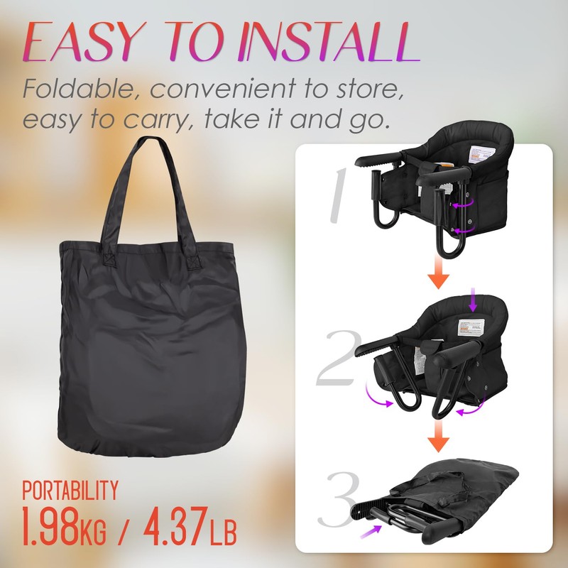 Hook on High Chair,Portable Foldable High Chair for Babies 6-36 Months, Includes Storage Bag (Black)