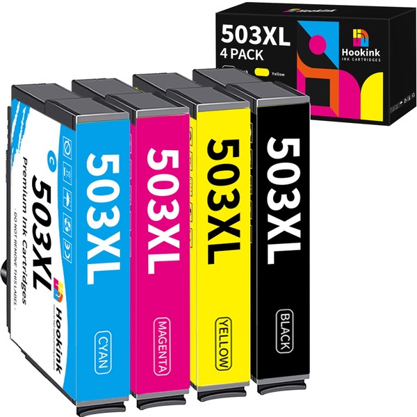 Hookink Pack of 4 503XL Cartridges Compatible with Epson 503XL 503 XL Printer Cartridges Compatible with Epson Expression Home XP-5200 XP-5205 Workforce WF-2960 WF-2965 WF-2960DWF WF-2965DWF