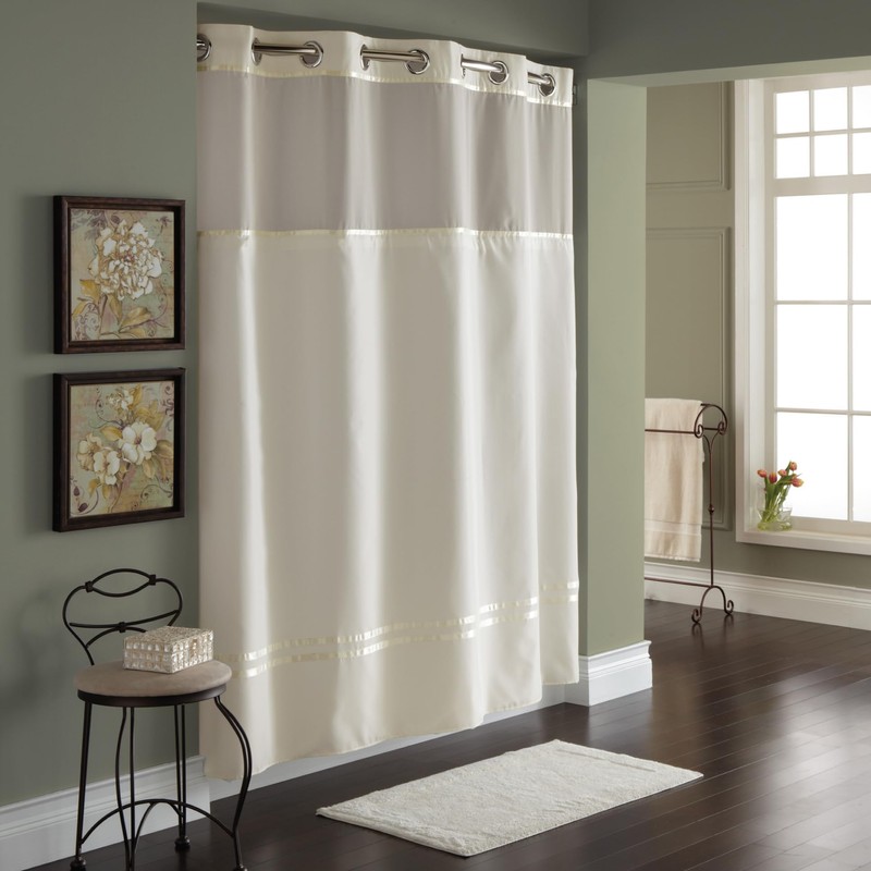 - SHEER WINDOW DESIGN – Our hookless shower curtain with snap-in liner includes a sheer viewing window that welcomes natural light into your shower enclosure while maintaining privacy. This translucent panel also reduces humidity and moisture for an inviting shower experience