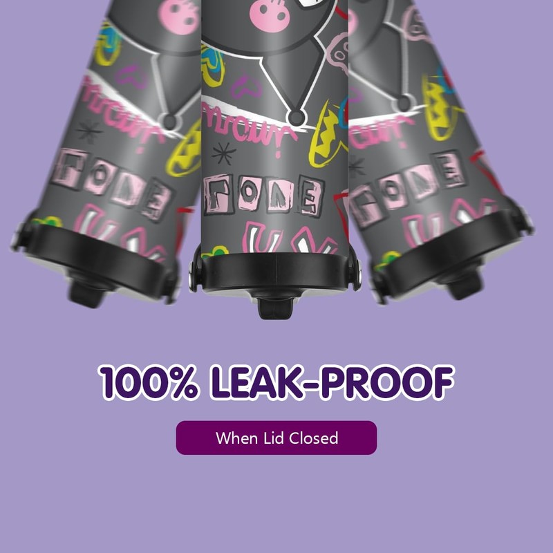 HOOKTA Kuromi Stainless Steel Water Bottle, 590 ml, Stainless Steel with Handle, Kitty Sports Water Bottles with Straw, Leak-Proof, Reusable Drink Cup (Pull)