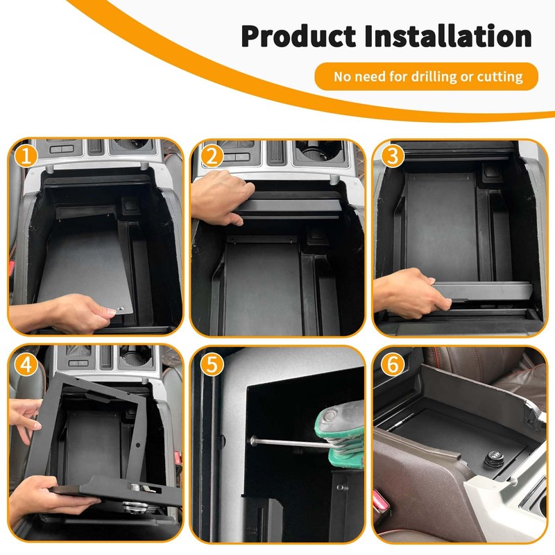 - PREMIUM MATERIAL-- The center console anti-theft storage box is made of high-quality strong steel, which is very strong and not easy to crack or deform. It adopts black powder coating surface treatment process, which is completely rust-proof and wear-resistant.