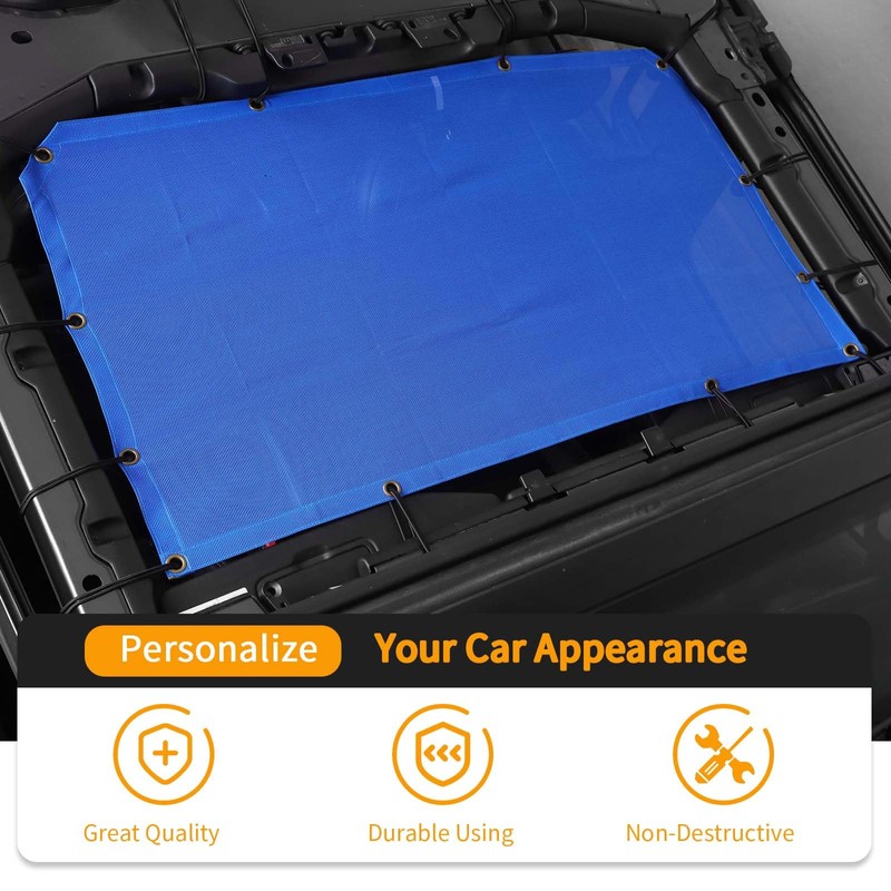 - EASY INSTALLATION-- No messy glue or drilling is required for installation, you can quickly install this mesh top for jeep wrangler to your car by using the included bungee cord. And compatible with soft and hard tops, so it is no need to remove your car’s sunshade to add your hard top or soft top.
