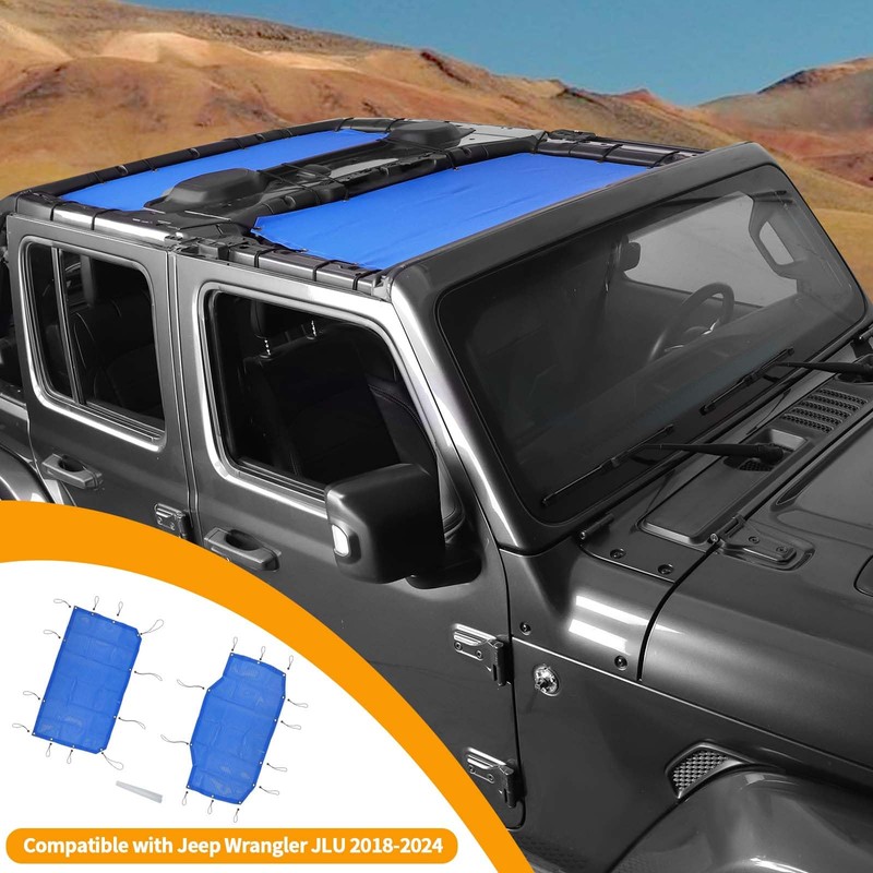 - PERFECT FITMENT-- The Top Sunshade is designed for Jeep Wrangler JLU 4 doors 2018 2019 2020 2021 2022 2023 2024.