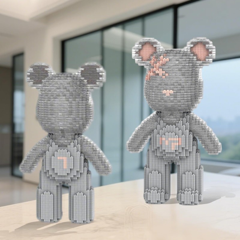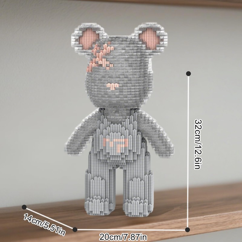 - El oso gris con tirantes contiene 2.850 microbloques de construcción con detalles exquisitos, lo que te brinda una excelente experiencia de construcción.