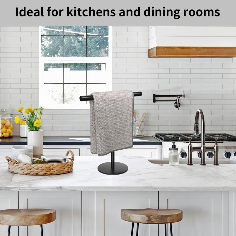 - 【Multi-Purpose Design】 The hand towel holder stand can not only holds up to 2 fingertip towels, also be used as a stylish addition to hang jewelry, keys, watch, paper, hair accessories,etc. Perfect for bathrooms, dressing tables, or kitchen countertops.